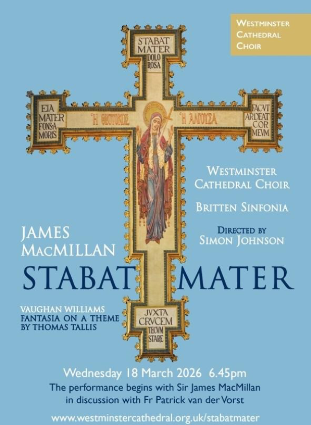 As part of our Lenten devotions this year, our Cathedral Choir and the Britten Sinfonia will perform a concert of reflection on the ancient Marian hymn, contemplating the sorrow of the Blessed Virgin Mary at the foot of the Cross: MacMillan’s Stabat Mater, and Vaughan Williams’ Fantasia on a Theme by Thomas Tallis.
